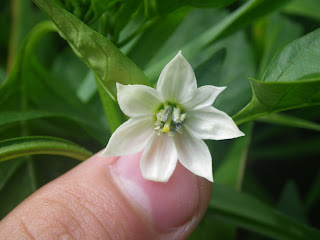 野菜の花も綺麗ですね。オクラの花は特別に綺麗ですね。ナスの紫色の花も綺麗だし、ピーマンの白く整った花も綺麗です。獅子唐と唐辛子はピーマンとそっくり。